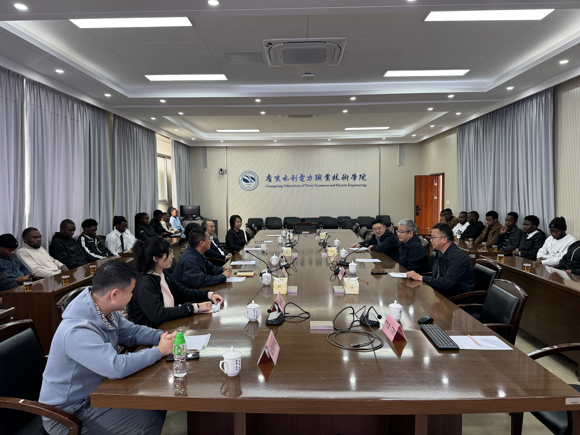 黄金校长对科研团队的到来表示热烈欢迎,并介绍了学校在中非职业教育合作方面取得的显著成果。他指出,学校与津巴布韦穆塔雷理工学院开展的深度合作,已形成可复制、可推广的办学模式,双方共建“广东水电—穆塔雷工程技术学院”,创新实施“2+1”来华留学培养路径,构建了“在非筑基—在华强化—返非就业”的人才培养闭环,该项目曾获“学习强国”平台、津巴布韦《先驱报》等国内外媒体广泛报道,成为中非职业教育合作的标杆案例。