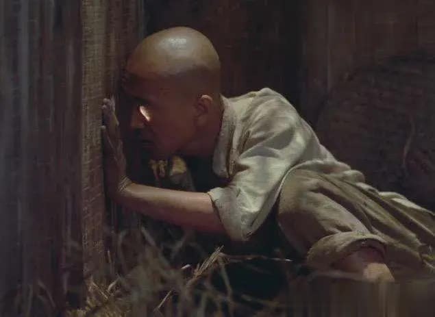 其实《影》中的故事似曾相识,老谋子在那部被禁的《菊豆》(1990年)里就讲过一次:一个被长期剥削压迫的长工爱上了老板娘,情欲驱使这个老实巴交的长工鼓足勇气与主妻偷情,继而“恶向胆边生”杀死了主子,取而代之过上了逍遥的生活。